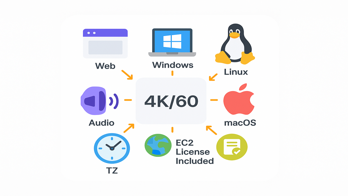 DCV brings the visuals: 4K at 60 FPS, plus audio and time zone redirection. Your timestamps stop gaslighting your logs, finally. AWS notes DCV is built for high-performance desktops and app streaming with up to 4K/60 and low latency. Translation: smooth UI, precise cursor, and no slideshow.