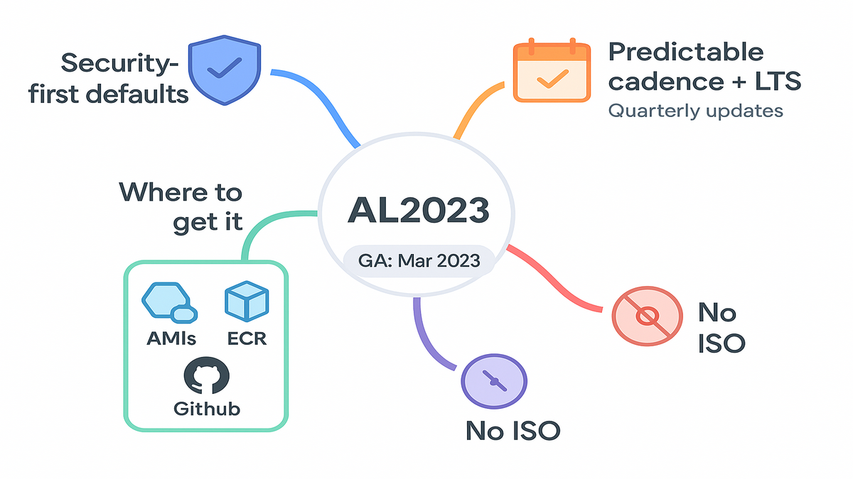 Amazon Linux 2023 hit General Availability in March 2023. Since then, AWS ships quarterly updates on security and reliability. Everything stays predictable for infra teams planning ahead.