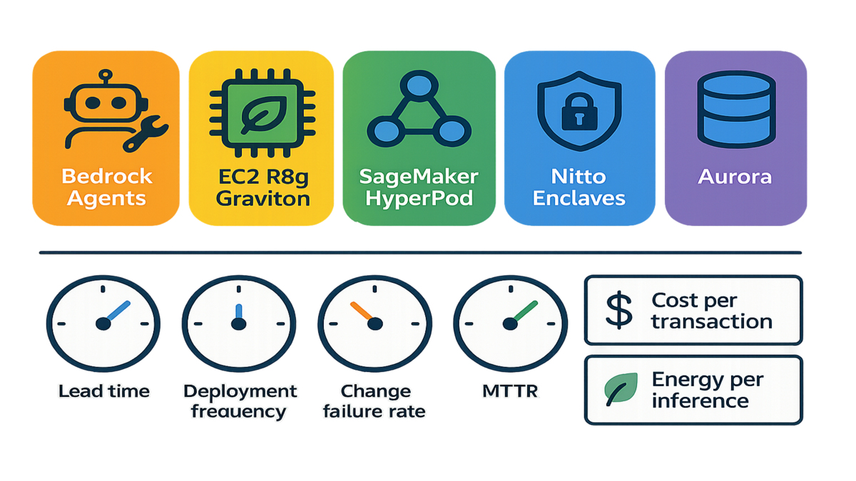 Why this works is simple and boring, which is good. You’re choosing compounding primitives, not shiny toys. Agents automate work across teams and time. Graviton cuts cost and power without drama or rewrites. Aurora keeps your app moving when traffic spikes. Enclaves lower risk without slowing teams down. HyperPod accelerates training when it actually matters. The dashboard forces focus and healthy tradeoffs. The rest is execution with good habits.