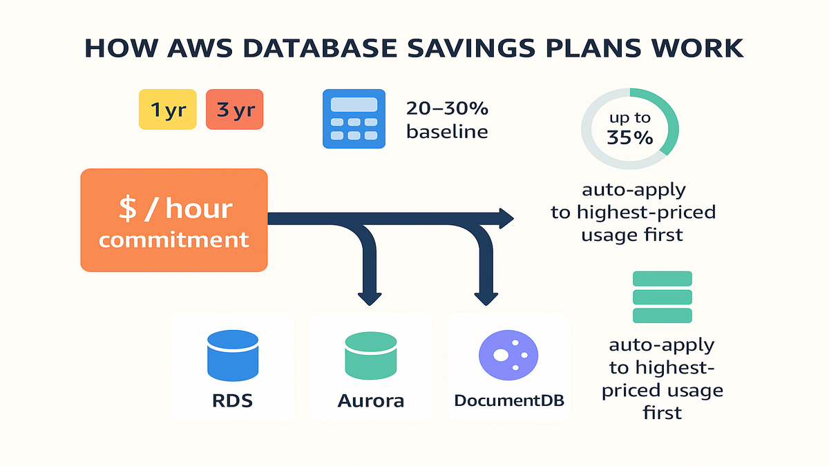 You’re probably paying too much for databases. Not because you’re reckless, but because AWS pricing reads like a tax code. Good news: AWS Database Savings Plans can cut RDS, Aurora, and DocumentDB by up to 35%—without locking you to one instance type.