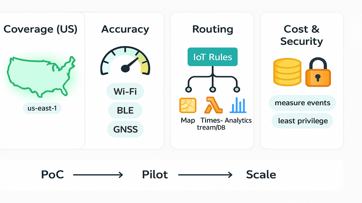 You bring BLE, Wi‑Fi, and GNSS signals. AWS resolves the location in the cloud. Route it anywhere — maps, data lakes, dashboards, alerts — using IoT Rules. The kicker? It’s generally available in us-east-1 (N. Virginia) today, with Sidewalk live across the U.S.