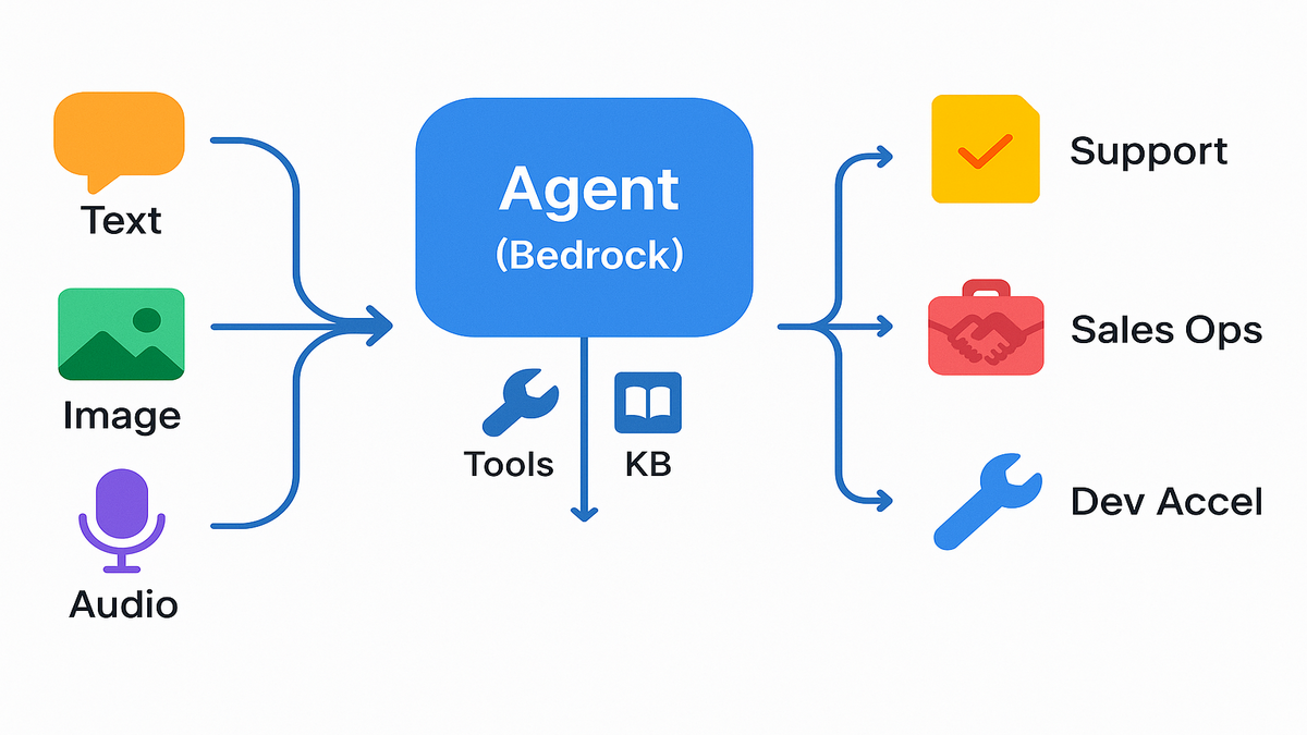 Your users don’t only type. They paste screenshots, upload docs, and leave voice notes. Multimodal models—text, image, audio, sometimes video—turn that messy edge into clean context. On Bedrock, you can pick from a model catalog (Anthropic, Meta, Mistral, Amazon Titan) and swap as needs change.