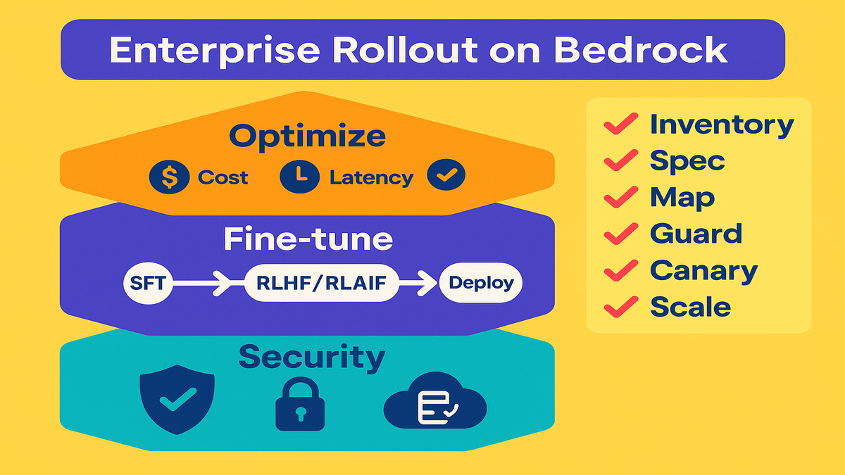 Workflow: start with SFT on your gold chats or code diffs. Layer a reward model tuned to business outcomes, like first‑contact resolution or compile success. Use offline evaluation to catch regressions. When stable, deploy on Bedrock and gate with Guardrails.
