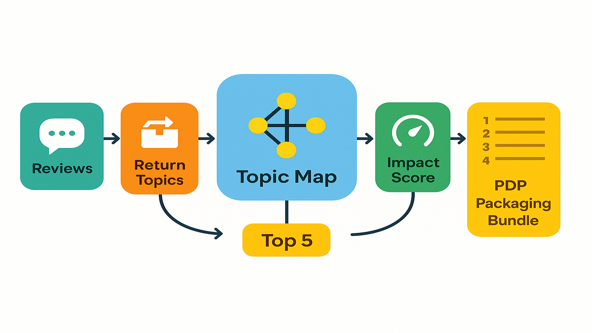 You do not need heavy ML for this work either. A tight loop of detect, decide, deploy, measure, and repeat is enough. It turns customerReviews and customerReturnTopics into fewer returns, stronger PDPs, and more revenue.