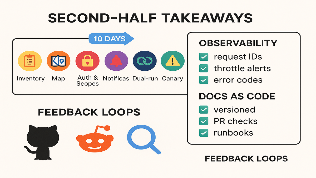 • Day 8: dual‑run in staging. Diff outcomes and tune throttling.