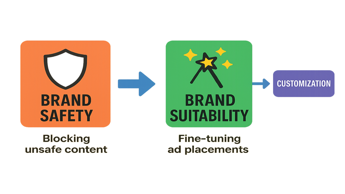Brand safety blocks your ad from the bad stuff—think scams, hate, violence. Suitability blocks out places that don’t feel right for your brand. It’s a vibe check, not just a safety check.