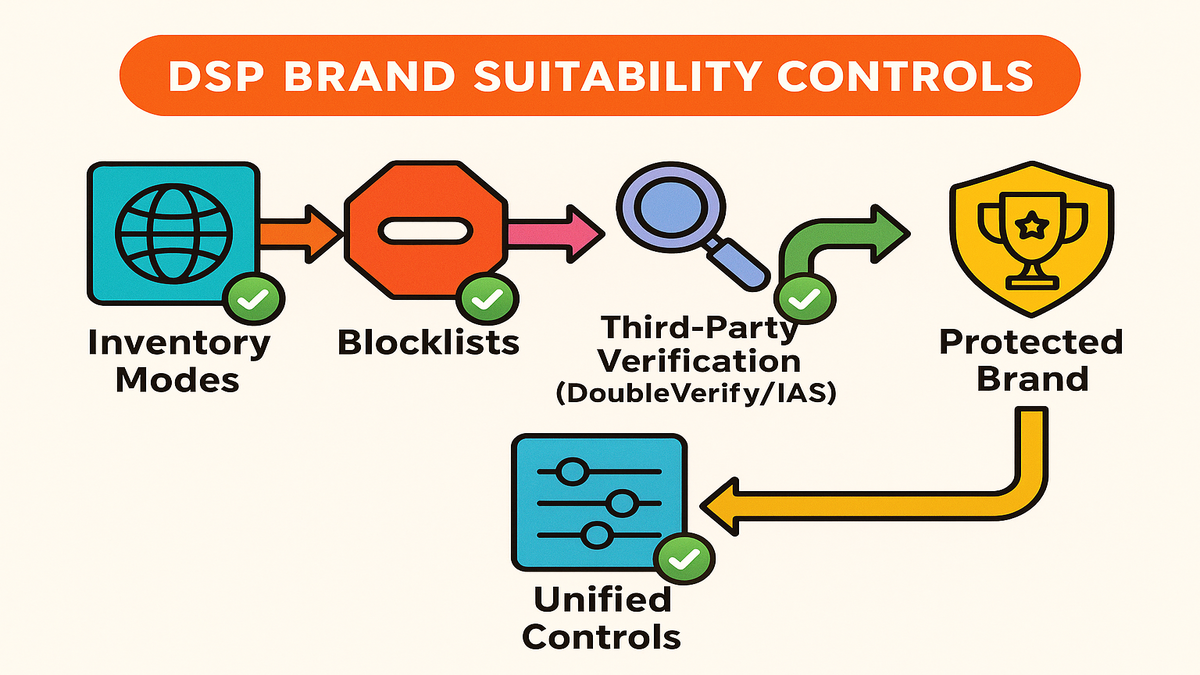 Brand safety avoids dangerous stuff (hate, violence, explicit). Suitability goes deeper—like matching your ad to your brand style and customers. So no cereal ads before mature gamer streams, ever.Can anyone use these DSP controls?