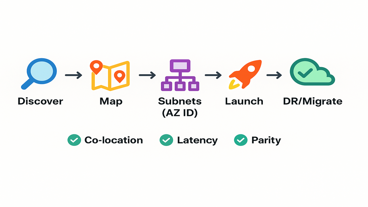 - During cutover, validate by querying AvailabilityZoneId via DescribeInstances or the console.