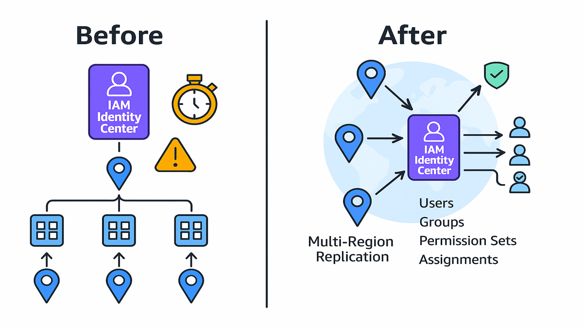 You know the pain. Identity stuck in one AWS Region, apps stranded elsewhere. A "switch Regions" plan that feels like a rebuild. Before now, AWS IAM Identity Center (formerly AWS SSO) forced one Region. Want to move? Nuke and pave. Users, groups, permission sets, app configs—the whole identity world—rebuilt from scratch.