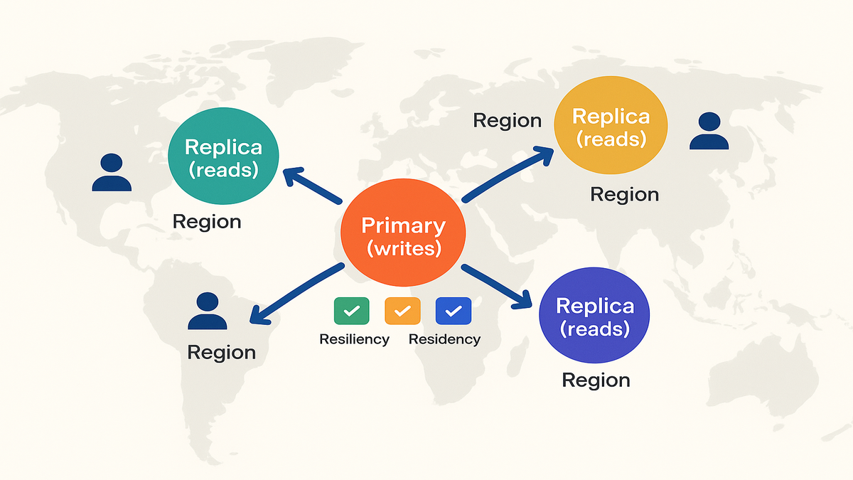- Manage centrally, read locally: writes stay in primary; reads fan out in Regions.