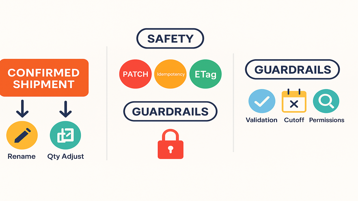 This isn’t “move fast and break pallets.” It’s controlled agility, not chaos. You get a clean audit trail. Your warehouse won’t run on bad data. And finance stops chasing ghosts. Let’s break down how to design it, ship it, and govern it. Without turning your API into the Wild West.