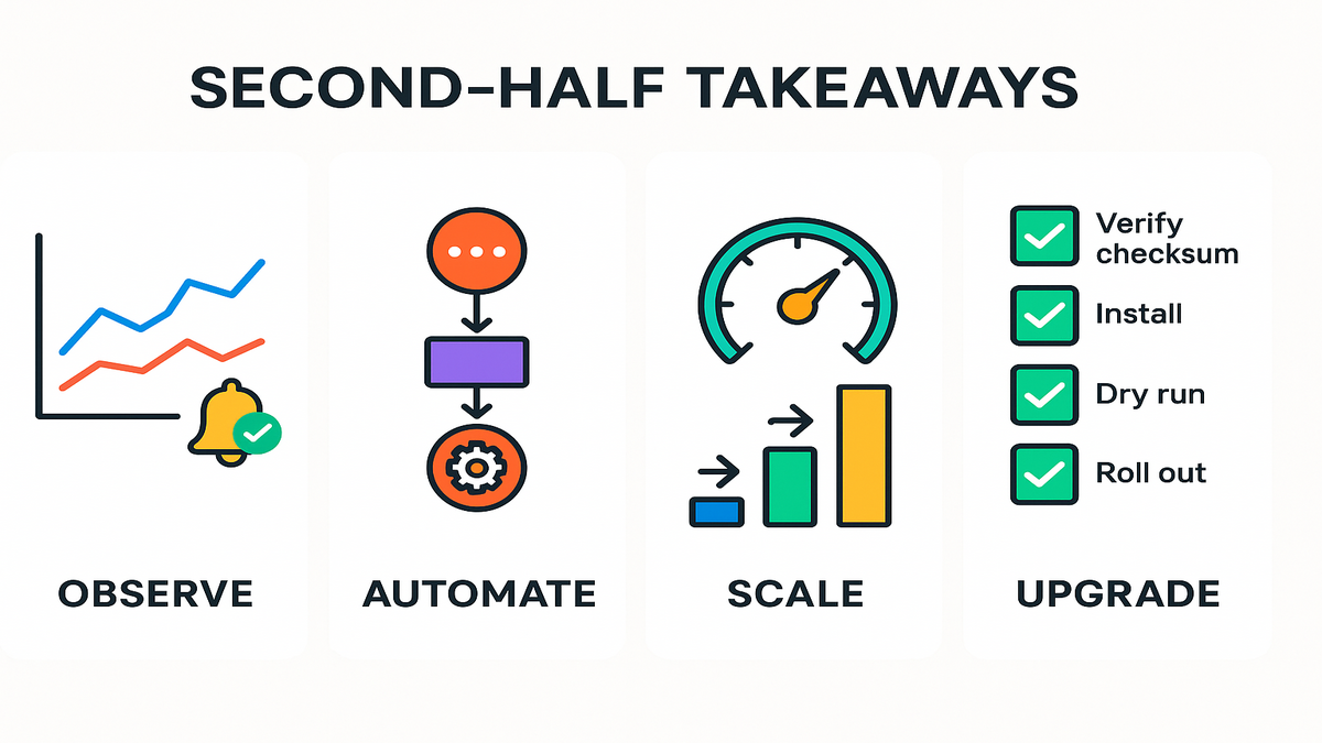 These are boring on purpose, and that’s exactly why they work. Boring is reliable, and reliable keeps incidents away from your day off.
