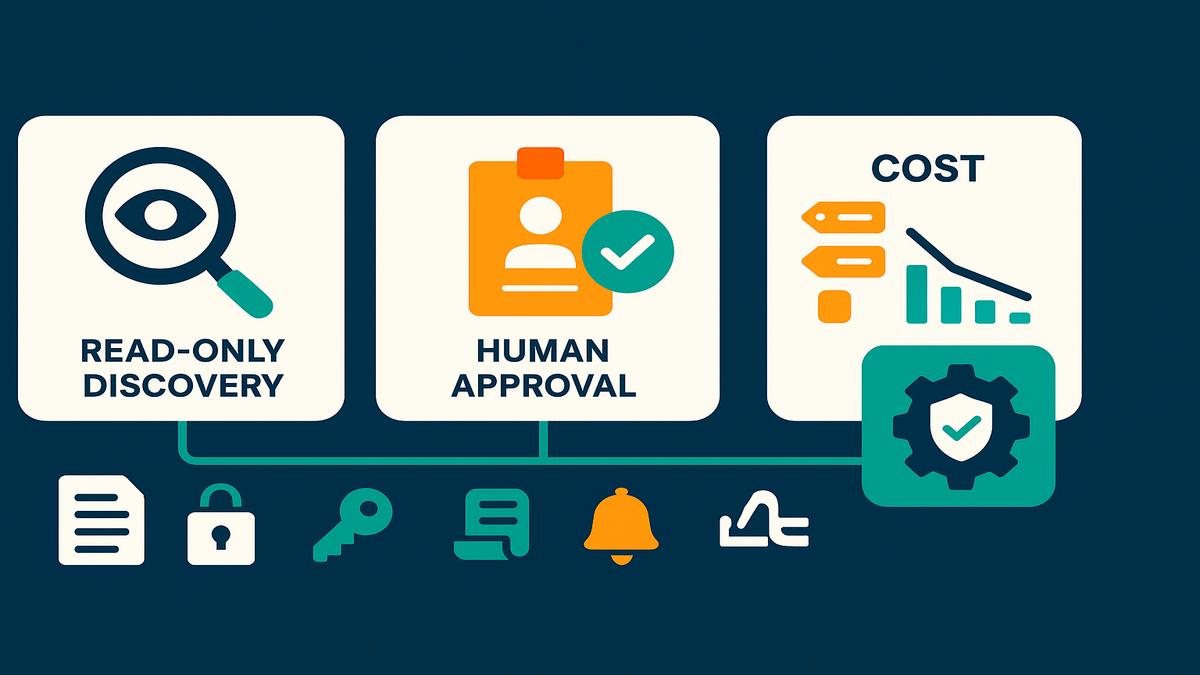 - Split discovery from automation. Add condition keys so writes require ChangeId tags.