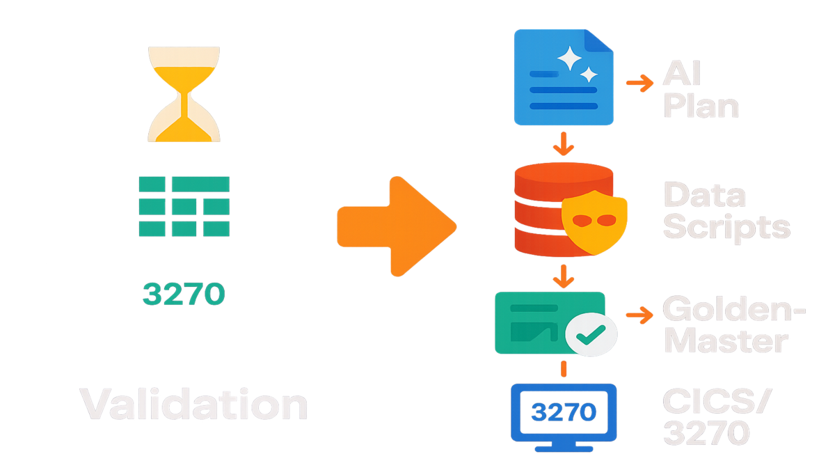 Shipping modern code is exciting. Validating against decades of mainframe behavior? Not fun. Most delays come from proving the new system matches the old one. Down to rounding rules, edge-case dates, and quirky field parsing. Manual steps make test plan creation and data wrangling swell and stall schedules.