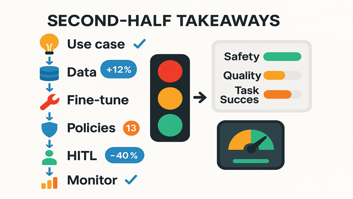- Roll out with human-in-the-loop and weekly drift reviews.