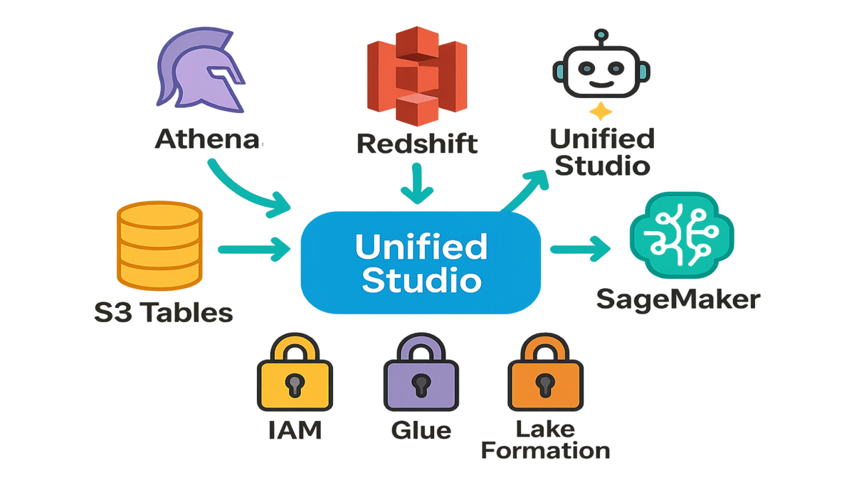 Unified Studio respects the roles and permissions you manage with IAM, Glue Data Catalog, Lake Formation, and S3—so your lakehouse governance comes along for the ride. Teams can explore data, share analytics, and manage model artifacts without inventing a parallel permission universe.