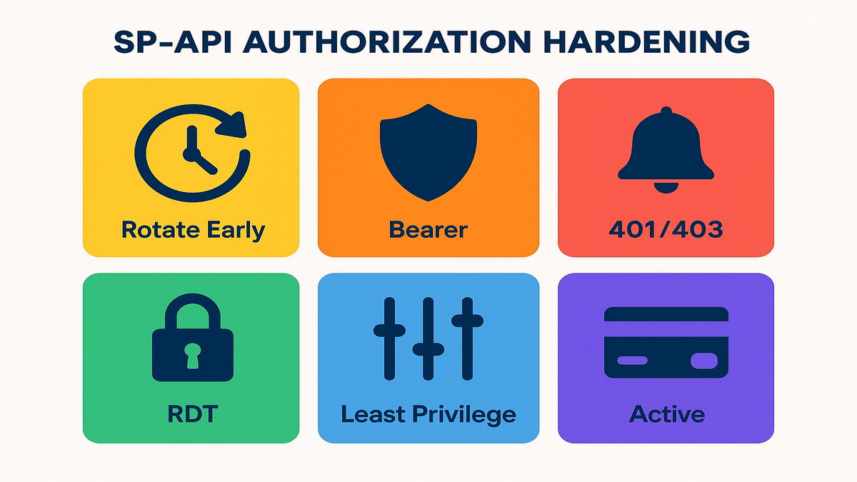 They’re the concrete practices to harden SP-API access. Strict OAuth 2.0 flows, precise scopes, secure token storage, proactive rotation, Vendor Central credential linking for vendors, and a valid charge method to prevent outages.