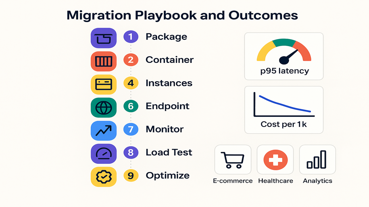 - Governance: VPC endpoints, KMS encryption, audit logs, and tight access policies. Batch overnight when costs are lower and windows are open.