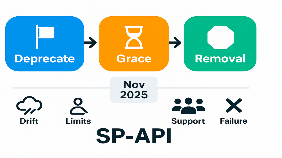 In practical terms, you can call deprecated endpoints today without much trouble. Tomorrow, you might get rate-limit shifts, edge-case breakage, or it may simply go dark. Amazon’s stance is clear: deprecated SP-API resources are callable for now but aren’t guaranteed long-term functionality. That’s not a stable contract you can rely on.
