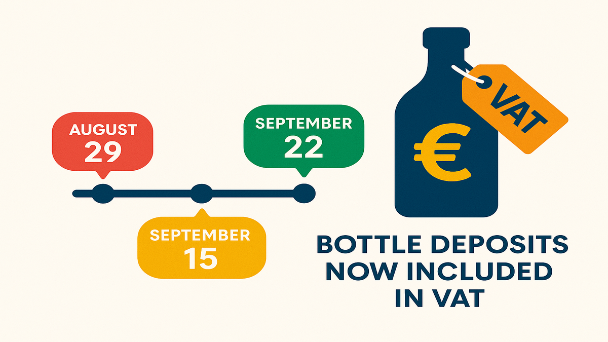 - Bottle deposits are counted in VAT and listed prices—starting September 22, 2025.